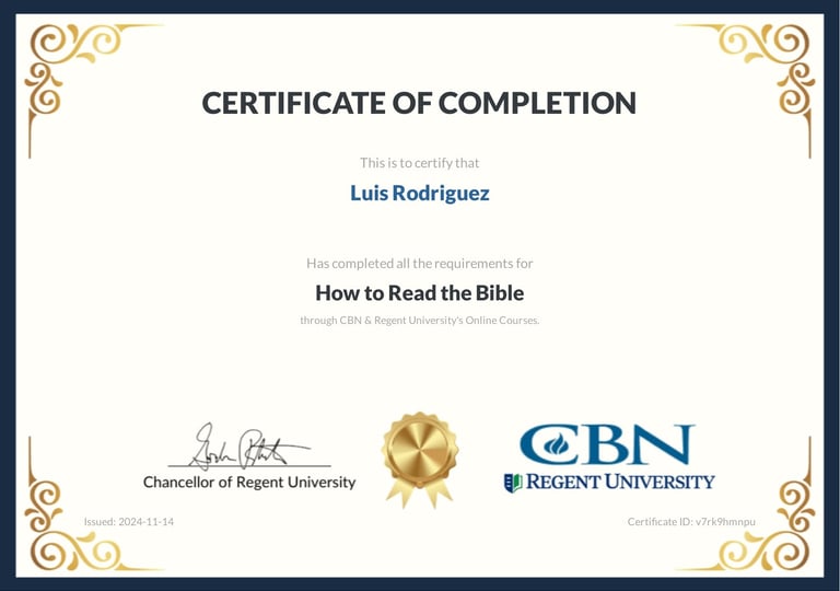 "How to Read the Bible" Certificate by CBN News